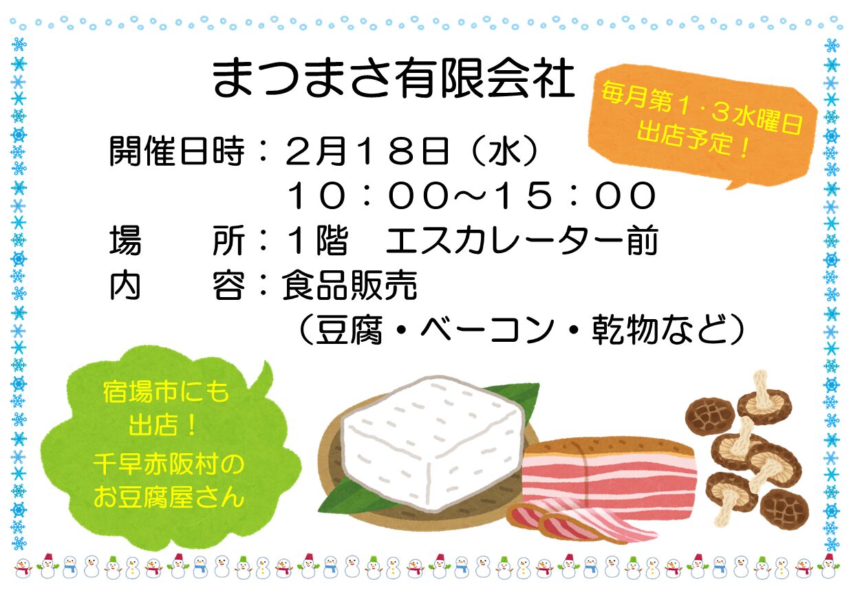宿場市にも出店していた千早赤阪村のお豆腐屋さん「まつまさ」です!