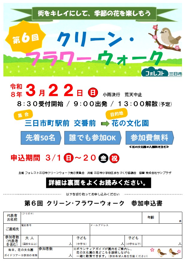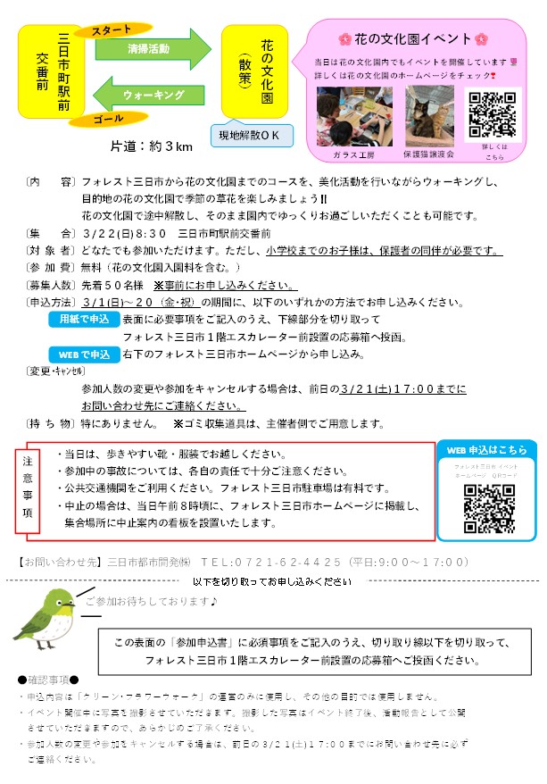 令和8年3月22日(日) 集合 8時30分 三日市町駅前交番前 出発9時